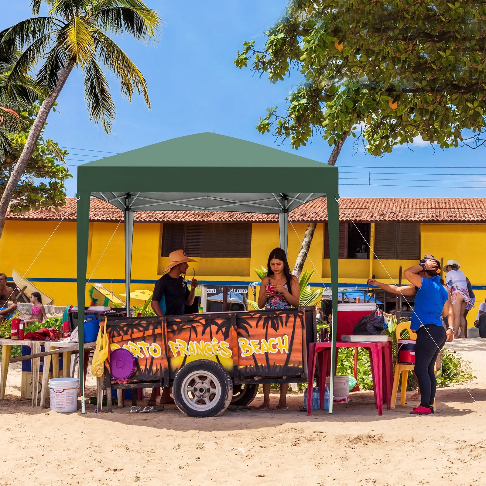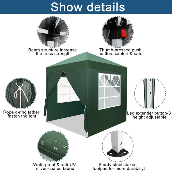 2 x 2m Two Doors & Two Windows Practical Waterproof Right-Angle Folding Tent Green