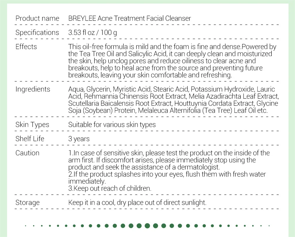 BREYLEE Acne Treatment Set 4pcs Facial Cleanser Toner Serum Cream Skin care